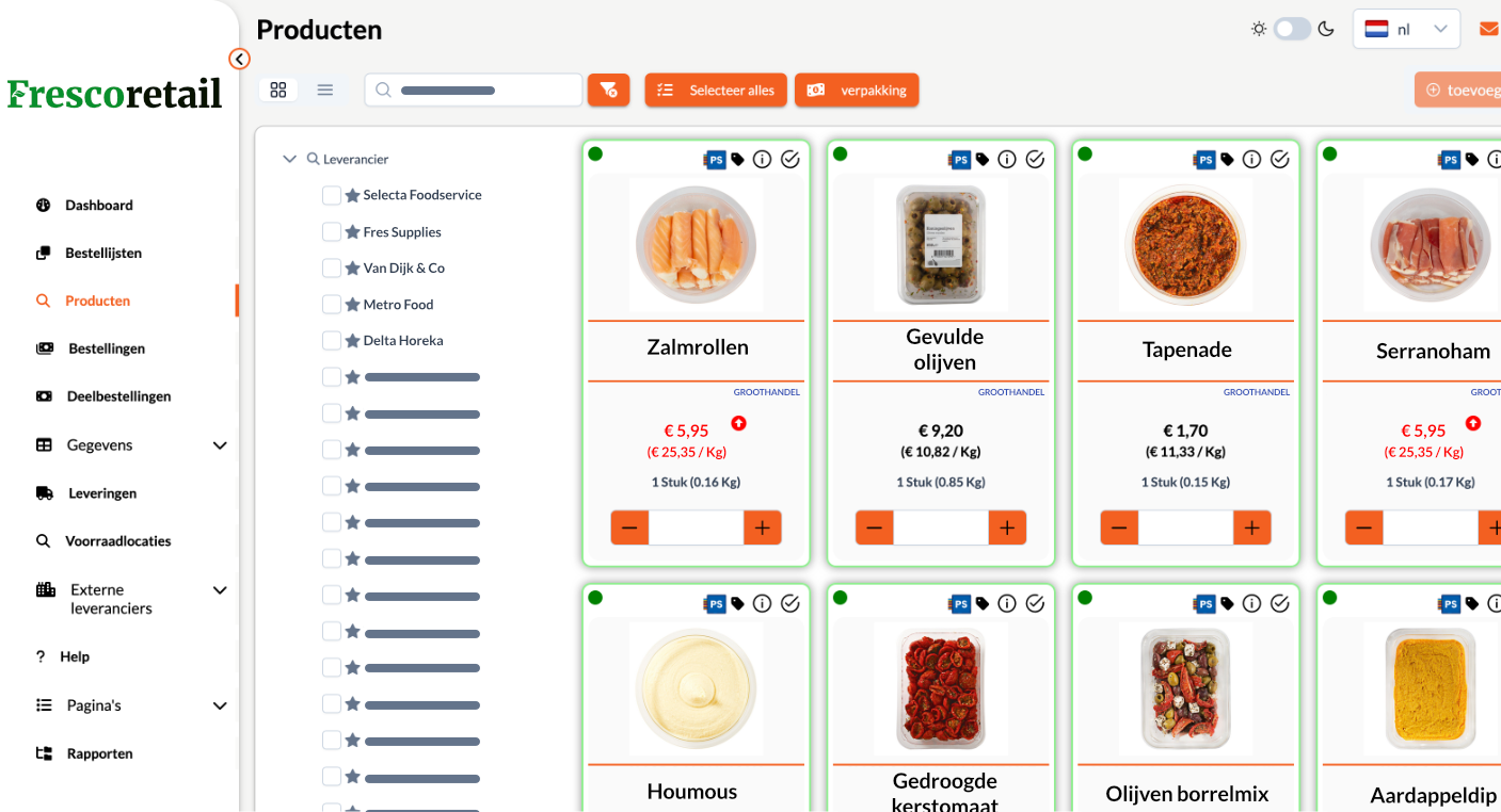 Snel en eenvoudig zoeken naar producten in het assortiment van jouw leveranciers.
